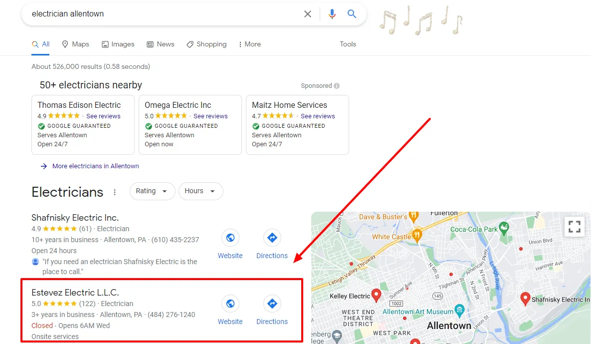Don’t let your competitors steal the show! The first three search results are vital to any successful business. That’s why it pays off in lost leads, booked jobs and growing sales—guaranteed if you’re not at or near those top spots on Google map when someone searches like “electrician near me.”